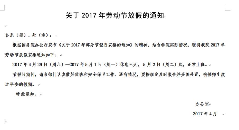 五一劳动节放假通知