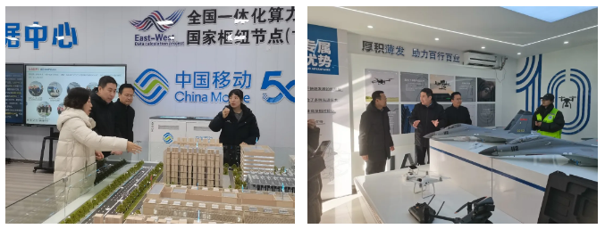此次调研活动安排紧凑、内容务实。上午,调研组在庆阳职业技术学院党委委员、副院长杨三宁及相关处室负责人陪同下,先后考察了全国一体化算力网络国家枢纽节点(甘肃·庆阳)展示中心、中国移动绿色智算中心、庆阳市低空经济人才培养基地及学院开放型区域产教融合实践中心。