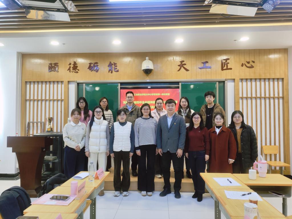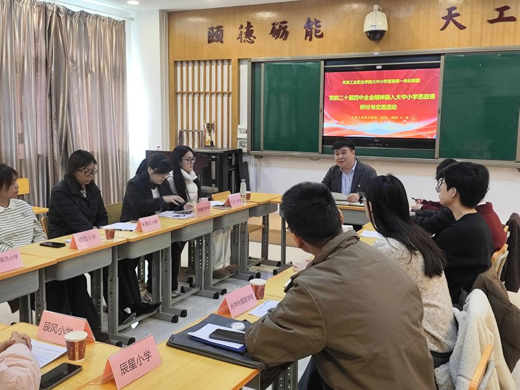 为深入学习贯彻习近平新时代中国特色社会主义思想和党的二十届四中全会精神,贯彻落实习近平总书记关于思政课建设的重要论述和指示批示精神,扎实推进大中小学思政课一体化建设,着力构建课程目标螺旋上升、核心内容一以贯之、教学方法精准适配的育人体系,推动党的创新理论“三进”工作走深走实,天津工业职业学院1118日举办大中小思政课一体化联盟活动暨党的二十届四中全会精神融入大中小学思政课研讨交流